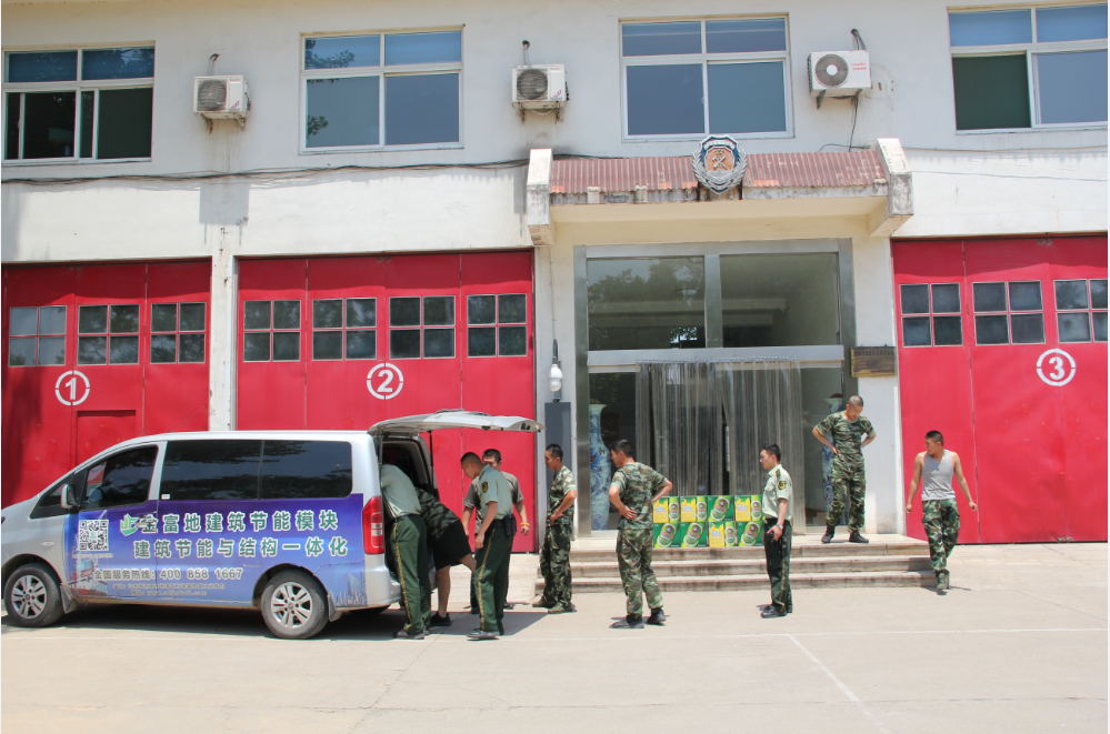 在慰問中,公司領導與消防隊領導進行了親切交流。公司領導對消防隊對金富地消防安全生產給予的大力支持和幫助表示感謝,并表示將一如既往地做好擁軍工作,積極支持部隊建設,同時,結合實際著重介紹和演示了金富地建筑節能模塊的節能環保,防火抗震等性能特點。消防隊領導對公司的慰問走訪表示衷心感謝,并表示金富地建筑節能模塊不僅防火等級高,產品質量好,還保溫隔熱,冬暖夏涼,抗震節能,隔音防潮,是綠色新型建筑產品。